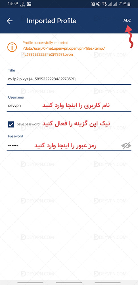 8 در قسمت Password رمز عبور را وارد کنید و بعد گزینه Add رو بزنید.